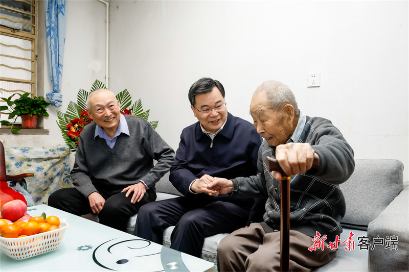 在走訪慰問全國先進工作者、退休工人高存花和老黨員朱建升時,胡昌升關(guān)切詢問他們的身體狀況、日常生活等情況,感謝他們作出的貢獻,祝福他們健康長壽。他強調(diào),各級各有關(guān)部門要悉心照顧老黨員、老干部和先進工作者,滿腔熱情為他們辦實事、做好事、解難事,讓他們安享幸福晚年。要進一步營造崇尚先進、學(xué)習(xí)先進、爭當先進的濃厚氛圍,教育引導(dǎo)廣大黨員干部不忘初心、頑強拼搏,為奮力譜寫中國式現(xiàn)代化甘肅篇章作出新貢獻。