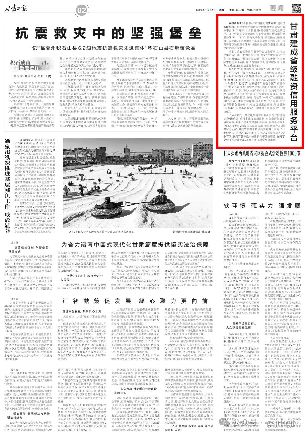 甘肅金控集團全力做好省級融資信用服務平臺建設運營