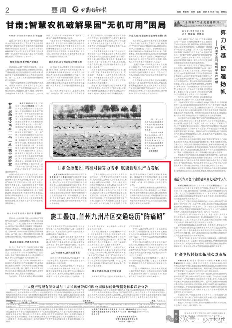 媒體關注 | 甘肅金控集團:精準對接算力需求 賦能新質生產力發展