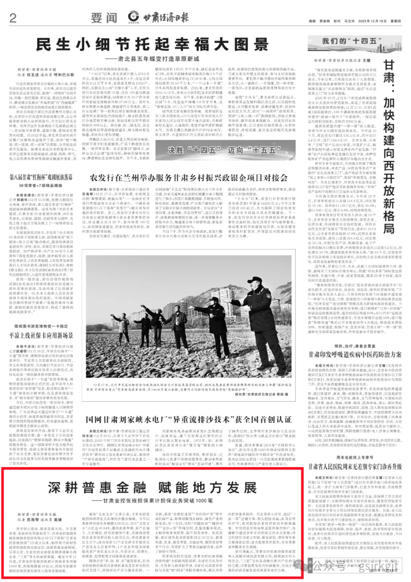 (新甘肅·甘肅經濟日報記者 蘇海琴 通訊員 高婧)堅守初心使命,服務發展大局。在甘肅省委、省政府的堅強領導下,甘肅金控集團所屬金控張掖融資擔保有限公司(以下簡稱“甘肅金控張掖擔保”)自成立以來,始終堅守政府性融資擔保機構功能定位,深耕普惠金融領域,以多元化、專業化的金融服務精準緩解小微企業、“三農”等主體融資難題。截至今年11月底,甘肅金控張掖擔保累計擔保業務突破1000筆,擔保規模超46億元,持續為張掖市域經濟高質量發展注入強勁金融動能。
