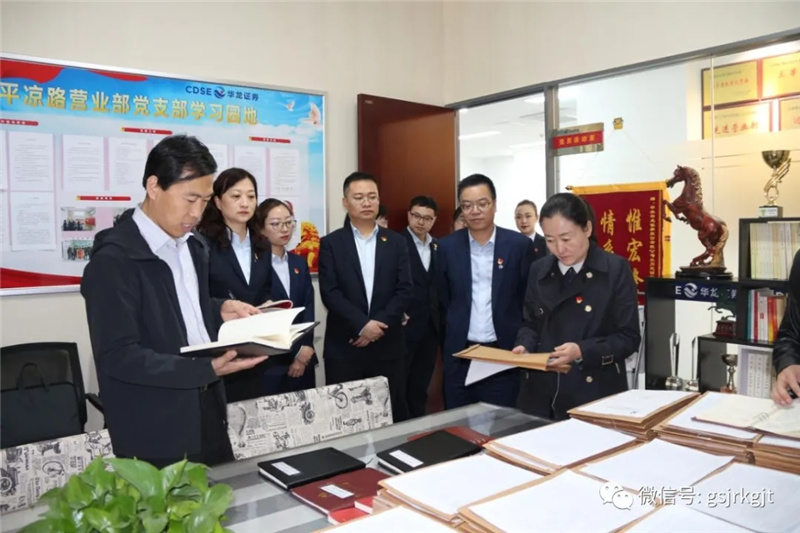 考核組還對(duì)金控集團(tuán)華龍證券2020年度黨建工作責(zé)任制落實(shí)情況進(jìn)行了民主測(cè)評(píng)、個(gè)別談話,查閱了黨建基礎(chǔ)資料,并對(duì)金控集團(tuán)辦公室、金控?fù)?dān)保集團(tuán)、華龍證券蘭州平?jīng)雎窢I(yíng)業(yè)部等基層黨組織黨建工作情況進(jìn)行了現(xiàn)場(chǎng)檢查。