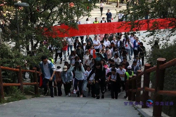 金秋九月,萬物豐稔,登高望遠,天高氣爽。為深入踐行不忘初心、牢記使命主題教育成果,隆重慶祝中華人民共和國成立70周年,甘肅金控、華龍證券800多名職工參加“贊綠水青山、與祖國同行”徒步登高健身活動,抒發對偉大祖國的崇敬和熱愛之情。