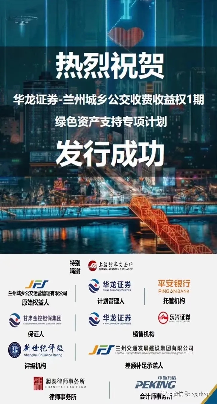 日前,由金控擔保作為保證人、華龍證券擔任計劃管理人的“蘭州城鄉(xiāng)公交收費收益權(quán)1期綠色資產(chǎn)支持專項計劃”成功發(fā)行,這也是甘肅首單綠色資產(chǎn)支持專項計劃。