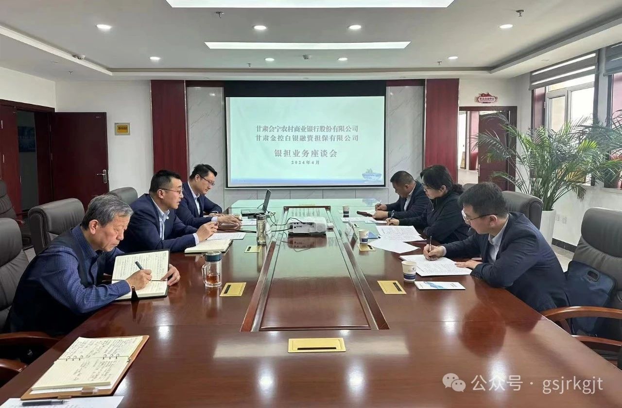 近日,會寧農商銀行副行長繆飛娟等一行3人到訪金控白銀擔保,雙方就開展銀擔業務合作召開了座談會。