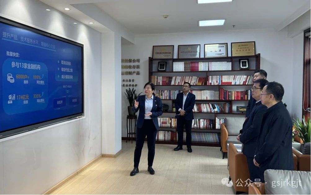 調(diào)研組一行聽取了金控?fù)?dān)保基本情況和經(jīng)營狀況介紹,詳細(xì)了解金控?fù)?dān)保以控股模式推進一體化體系建設(shè)、以數(shù)智創(chuàng)新賦能高質(zhì)量發(fā)展等情況,并觀看了金控?fù)?dān)保信息系統(tǒng)和項目管理系統(tǒng)演示,對金控?fù)?dān)保運用“科創(chuàng)?!薄霸O(shè)備擔(dān)”等專項產(chǎn)品服務(wù)保障“兩新”“兩重”政策的做法給予肯定,希望甘肅和安徽兩省政府性擔(dān)保機構(gòu)加強交流合作,在服務(wù)重大戰(zhàn)略和地方經(jīng)濟方面作出更大貢獻。