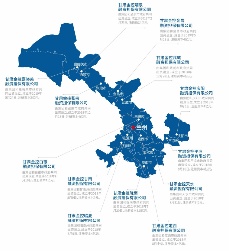 甘肅金控融資擔(dān)保集團股份有限公司是由甘肅金融控股集團有限公司出資、經(jīng)甘肅省地方金融監(jiān)督管理局核準而設(shè)立的省級政府性融資擔(dān)保機構(gòu),甘肅省人民政府確定的省級融資再擔(dān)保機構(gòu),國家融資擔(dān)?;鸷灱s合作單位。