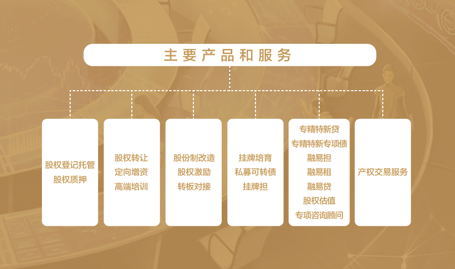 經(jīng)營(yíng)范圍包括:為非上市企業(yè)的股權(quán)登記、托管、轉(zhuǎn)讓、交易、融資、結(jié)算、過(guò)戶、分紅、企業(yè)規(guī)范、培育等提供場(chǎng)所和服務(wù);組織和監(jiān)督股權(quán)托管交易活動(dòng);發(fā)布市場(chǎng)交易信息;為非上市公司進(jìn)場(chǎng)掛牌提供融資、咨詢等綜合服務(wù);為各類企業(yè)提供股權(quán)轉(zhuǎn)讓及增資擴(kuò)股、實(shí)物資產(chǎn)、債權(quán)、不良資產(chǎn)和集中采購(gòu)等產(chǎn)權(quán)交易業(yè)務(wù)服務(wù),以及政策咨詢、方案設(shè)計(jì)、項(xiàng)目推介、資產(chǎn)盡調(diào)等增值服務(wù)。