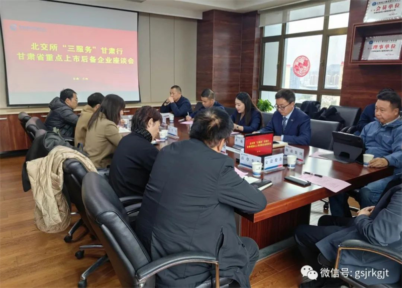 在重點(diǎn)上市后備企業(yè)座談會上,省金融監(jiān)管局金融三處副處長蓋瀚琳、北交所西北基地副首席代表潘振華及甘肅股權(quán)交易中心總經(jīng)理郭曉偉與8家參會企業(yè)就經(jīng)營情況、上市進(jìn)展和當(dāng)前困難等進(jìn)行了交流,并結(jié)合企業(yè)經(jīng)營特點(diǎn)和資本市場規(guī)劃,共同探討了上市路徑選擇、上市時間規(guī)劃及扶持獎補(bǔ)政策利用等方面的問題,力促企業(yè)高質(zhì)量發(fā)展,打好上市基礎(chǔ)。