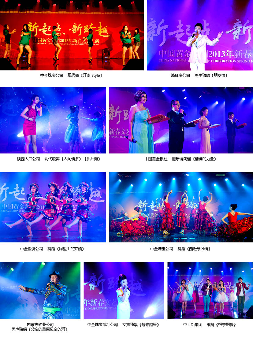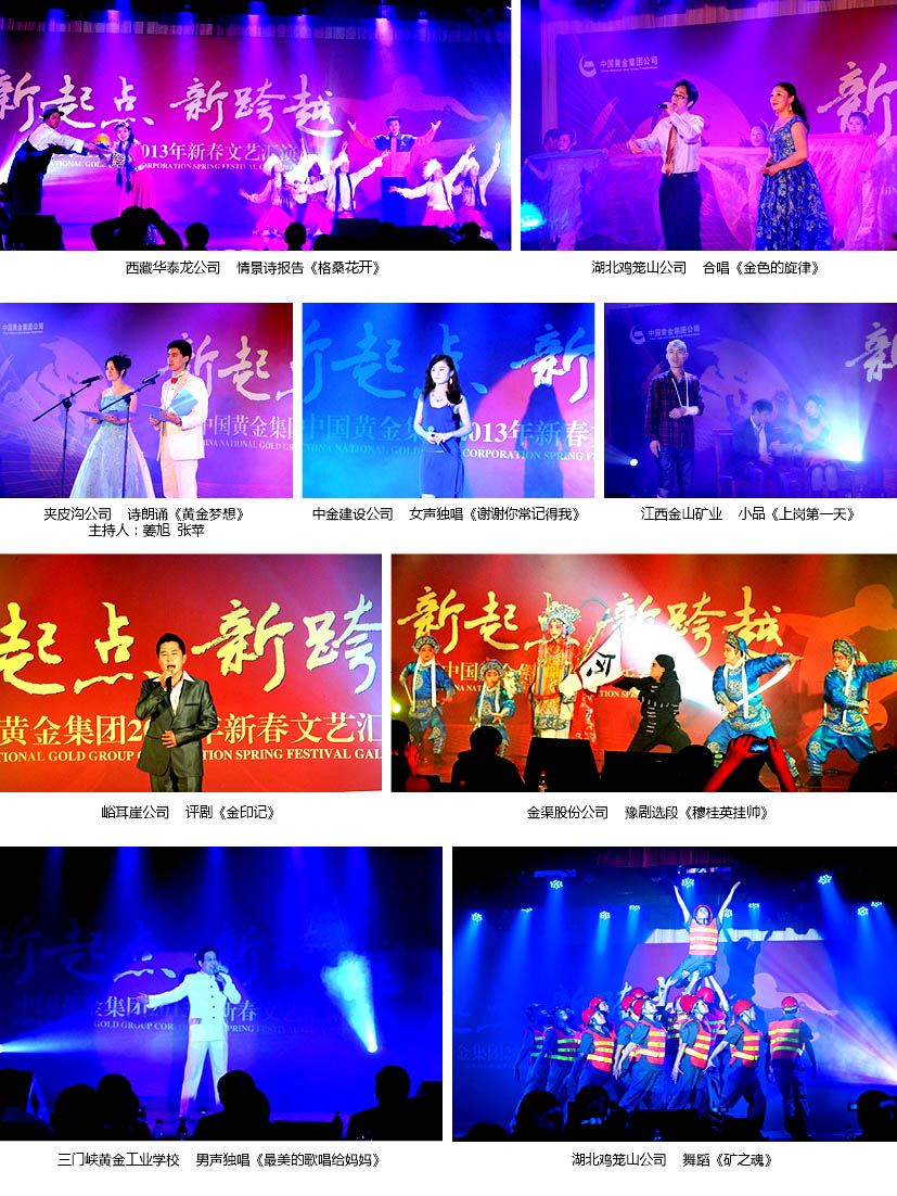 12月18日,中國黃金集團(tuán)公司2013年迎新春文藝匯演在集團(tuán)總部多功能廳舉行,來自基層一線近300名職工參加了演出。集團(tuán)公司黨委副書記、紀(jì)委書記、副總經(jīng)理宋權(quán)禮觀看了演出并致辭。 18日上午9時,集團(tuán)公司綜合業(yè)務(wù)樓多功能廳內(nèi)歡聲笑語,處處洋溢著歡樂、祥和的氣氛。在《盛世歡歌》的開場舞蹈中,文藝匯演拉開了序幕。來自全國各地近30家集團(tuán)公司權(quán)屬企業(yè)一一表演了精彩紛呈的節(jié)目。既有《金彩飛揚(yáng)》、《為誰辛苦為誰忙》、《讓世界感動》等歌舞節(jié)目,又有《海溝公司贊》、《新起點(diǎn)、新發(fā)展》、《歡天喜地迎新春》等快板舞蹈;既有《黃金礦工之戀》、《最美的歌唱給媽媽》、《越來越好》等獨(dú)唱節(jié)目,又有《讓座》、《上崗第一天》小品節(jié)目,以及情境詩報告《格桑花開》,等多種藝術(shù)形式的36個節(jié)目。整場演出恢弘大氣、連貫順暢,所有節(jié)目緊緊圍繞“新起點(diǎn)、新跨越”的主題,充分表達(dá)了集團(tuán)公司在“四年翻兩番”的基礎(chǔ)上,“立足新起點(diǎn)、制定新目標(biāo)、實(shí)現(xiàn)新跨越、進(jìn)軍500強(qiáng),建成世界一流礦業(yè)公司”的信心和決心。 文藝匯演在歌舞《相親相愛》中,伴隨著觀眾熱烈的掌聲落下帷幕。