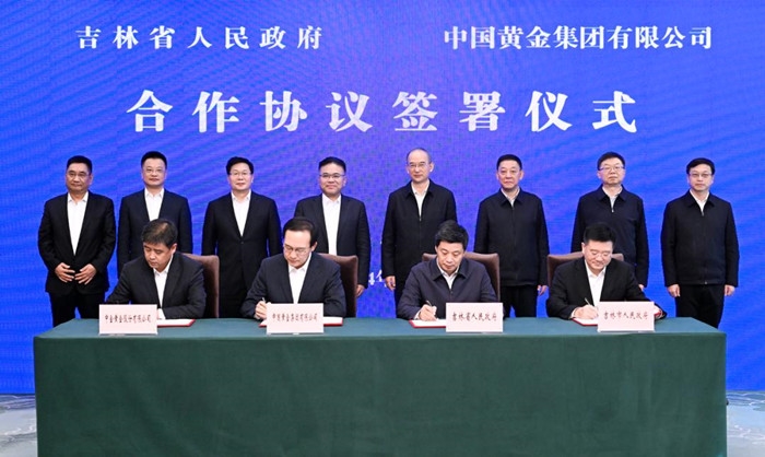 黃強、胡玉亭代表吉林省委、省政府向周洲、殷長波一行表示歡迎,對中國黃金集團給予吉林省的大力支持表示感謝。黃強說,近年來,中國黃金集團積極服務東北發(fā)展、助力吉林全面振興,與吉林省合作不斷深化。集團旗下的吉林夾皮溝金礦擁有200多年開采歷史,被譽為“中國黃金第一礦”,見證了中國黃金業(yè)的發(fā)展與輝煌。這次雙方簽署協(xié)議,圍繞挖掘宣傳夾皮溝金礦歷史、共同推動高質量發(fā)展等方面提出一系列具體舉措,相信一定能促進雙方合作更加緊密、更加務實、更富成效。希望雙方在金礦資源勘探開發(fā)等方面持續(xù)加強合作,不斷完善產業(yè)鏈、提升價值鏈;攜手推動工文旅深度融合發(fā)展,謀劃建設中國黃金博物館,充分發(fā)揮愛國主義教育基地作用,生動展示中國黃金產業(yè)發(fā)展的光輝歷程,進一步促進消費、擴大內需、助力經濟增長。