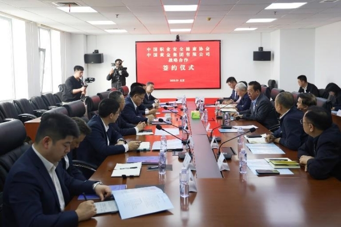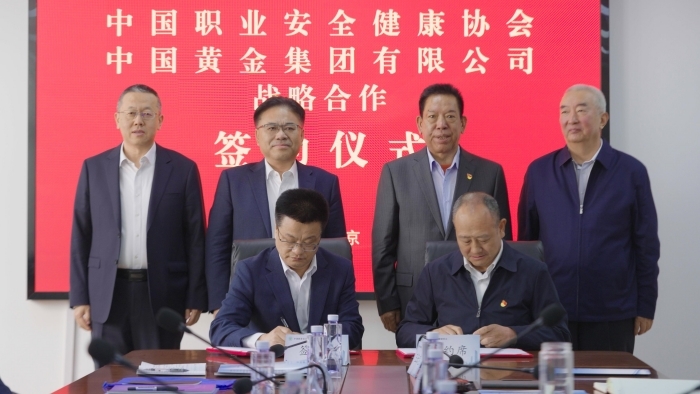 3月12日,中國黃金集團有限公司與中國職業(yè)安全健康協(xié)會(以下簡稱協(xié)會)戰(zhàn)略合作協(xié)議簽約儀式在北京舉行。集團公司黨委書記、董事長周洲,協(xié)會黨委書記、理事長王德學(xué)出席簽約儀式并講話。