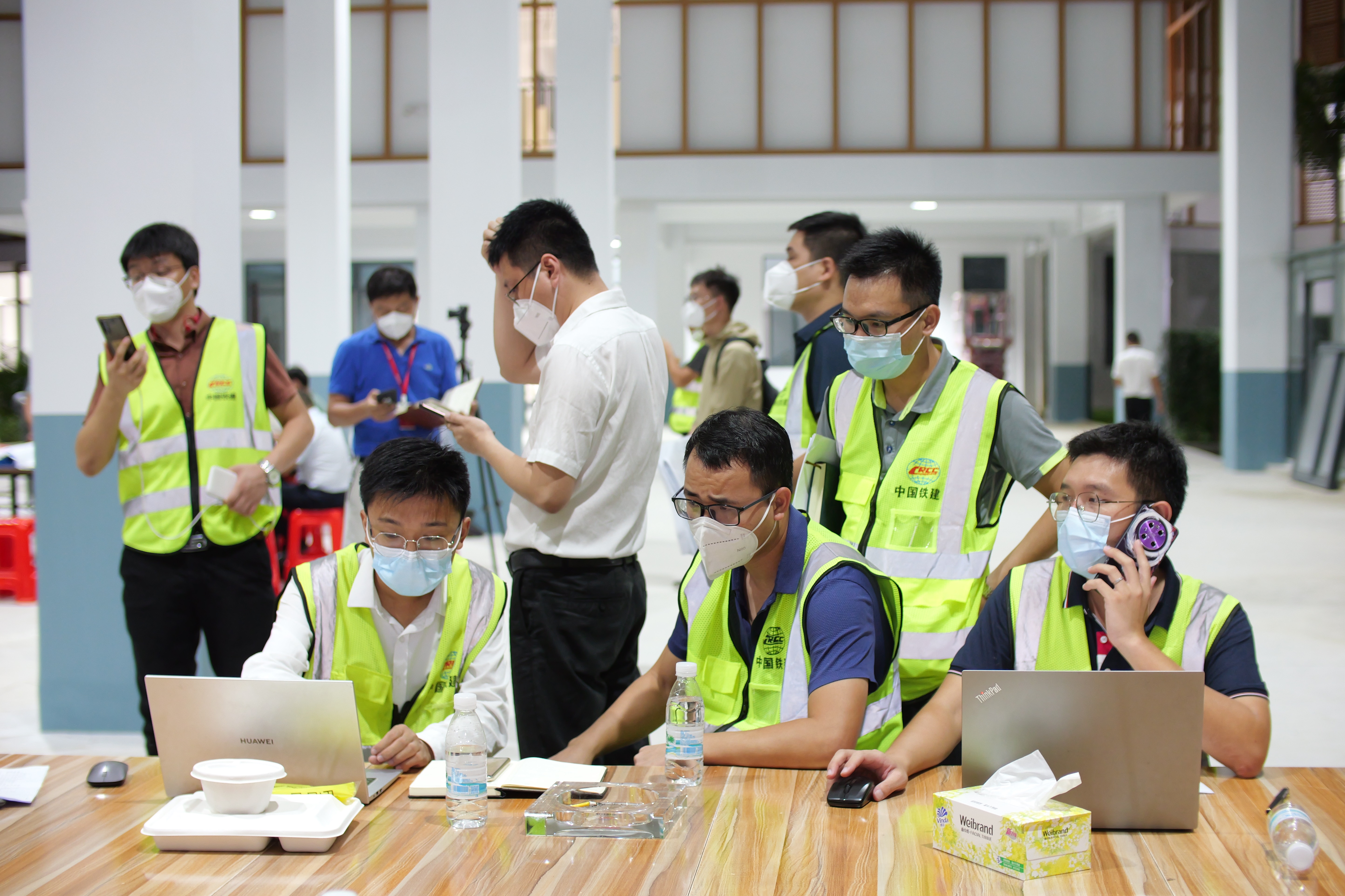 8月13日下午,指揮部確定選址后,迅速從海口、三亞在施項目調集上千名工人,從河北、湖北、廣東、海南四省調集的1300多種、260車次主要施工物資也在開工24小時內全部到場。施工高峰期,現場1094名工人同時作業,所有工序平行施工。