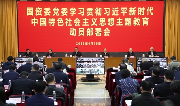 4月10日,國(guó)資委黨委召開學(xué)習(xí)貫徹習(xí)近平新時(shí)代中國(guó)特色社會(huì)主義思想主題教育動(dòng)員部署會(huì),深入學(xué)習(xí)貫徹習(xí)近平總書記在中央主題教育工作會(huì)議上的重要講話精神,對(duì)國(guó)資委黨委管理領(lǐng)導(dǎo)班子的中央企業(yè)、國(guó)資委機(jī)關(guān)和直屬單位、行業(yè)協(xié)會(huì)開展主題教育進(jìn)行動(dòng)員部署。中央第三十八指導(dǎo)組組長(zhǎng)、北京市人大常委會(huì)主任李秀領(lǐng)出席會(huì)議并講話。國(guó)資委黨委書記、主任,國(guó)資委黨委主題教育領(lǐng)導(dǎo)小組組長(zhǎng)張玉卓在會(huì)上作動(dòng)員講話。國(guó)資委黨委委員、副主任,國(guó)資委黨委主題教育領(lǐng)導(dǎo)小組副組長(zhǎng)、辦公室主任譚作鈞主持會(huì)議。中央第三十八指導(dǎo)組副組長(zhǎng)王炳南及指導(dǎo)組成員,國(guó)資委黨委委員,副部長(zhǎng)級(jí)干部出席會(huì)議。